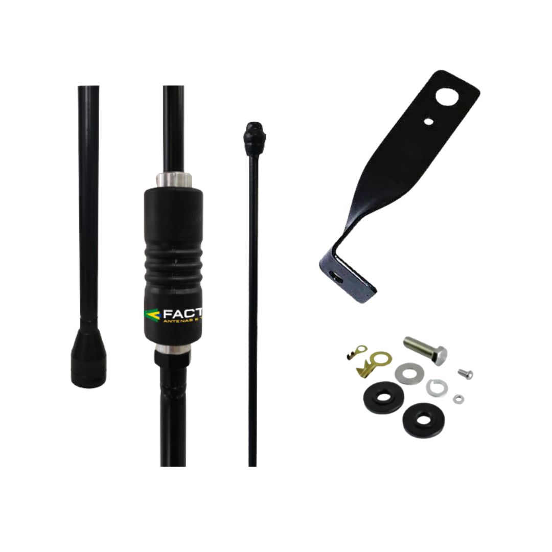 Antena PX de alto desempenho com suporte dianteiro para VW Delivery e MB Atego (lado carona). Comunicação clara e instalação fácil. Pronta para uso profissional.